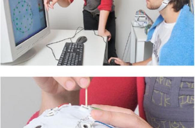 We have two chambers equipped with 64-channel amplifiers, and two chambers with the Brain Amp DC® 32-channel portable amplifier which connects to any laptop and can be powered with batteries. Thus, the 32-channel amplifiers can also be used for experiments run outside the center (e.g., in schools or hospitals).